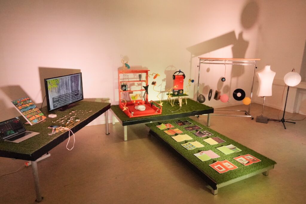 The collaborative exhibition In Conversation by artist Jay Afrisando at Galerie im Turm focuses on disability, community, and interdisciplinarity. It asks: What does art look like when artists with diverse perspectives on disability are involved? What artistic response do they offer to social barriers? The collaborative works include short films, installations, interactive games and live performances. They were developed using the concept of “Crip Time” – an organic, communal creation process.